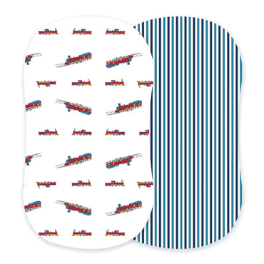 Vintage Steam Trains and Blue and White Stripe Bamboo Changing Pad