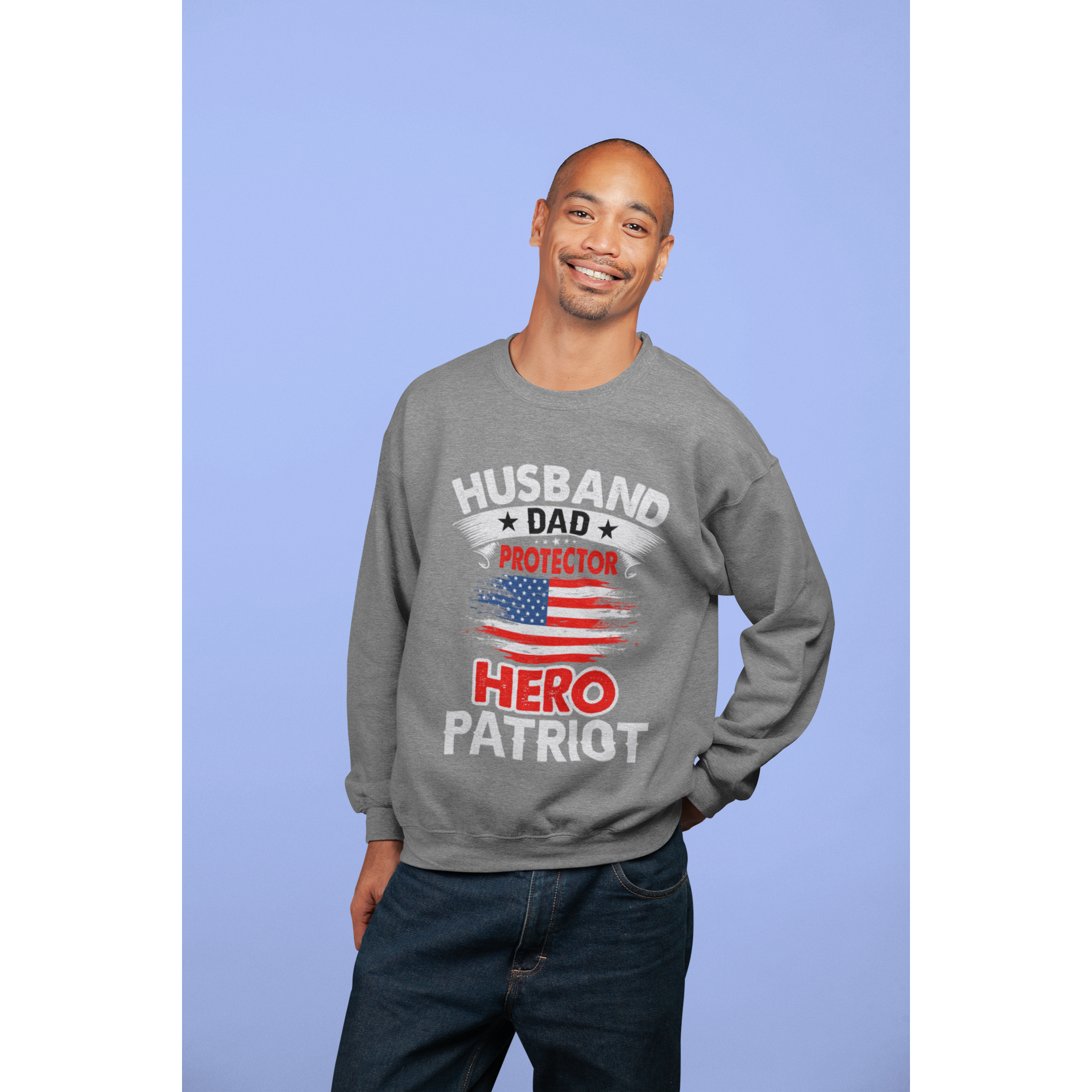 Husband, Dad, Protector, Hero, Patriot Crewneck Sweatshirt