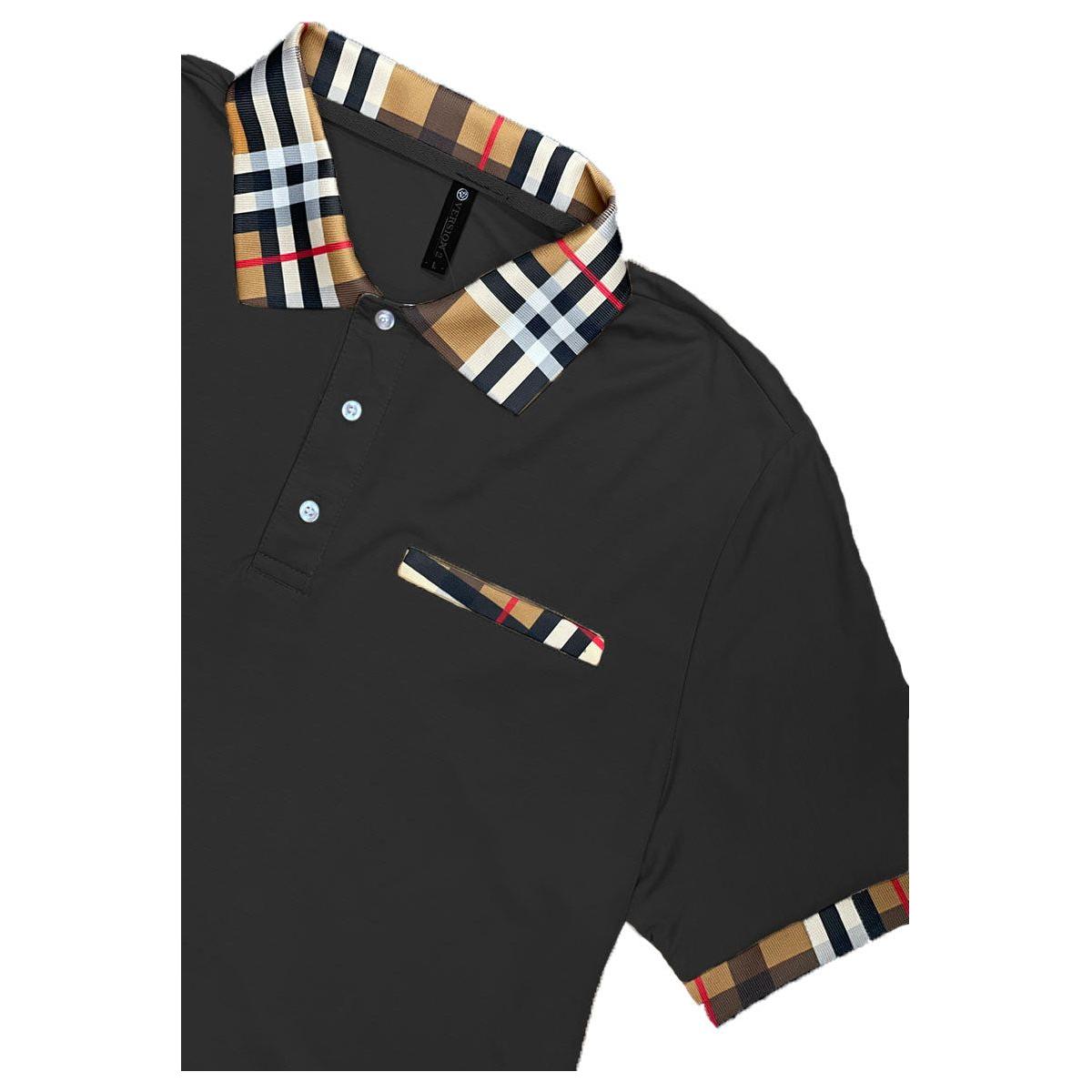 Checkered Plaid Collar, Sleeve Hem and Faux Chest Pocket