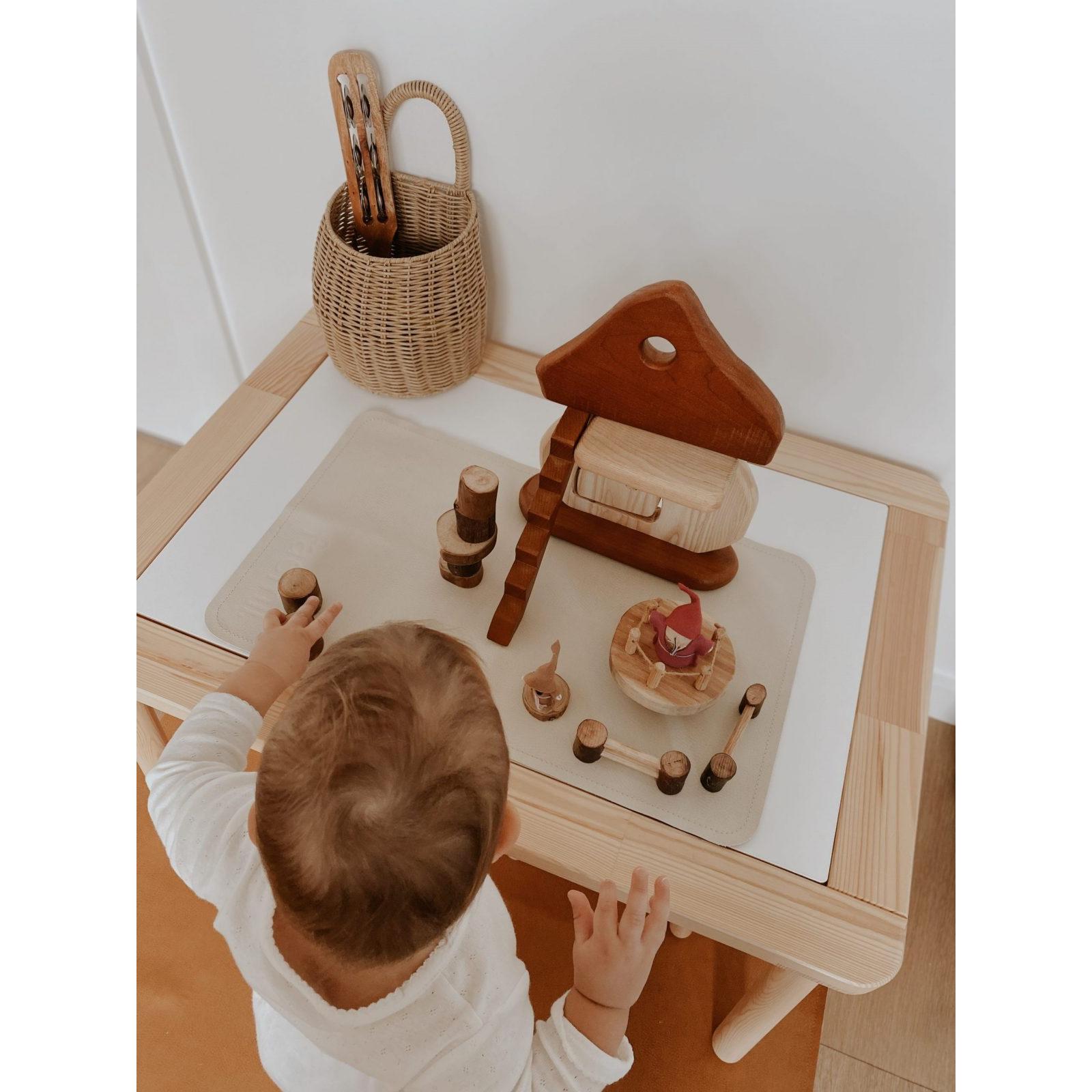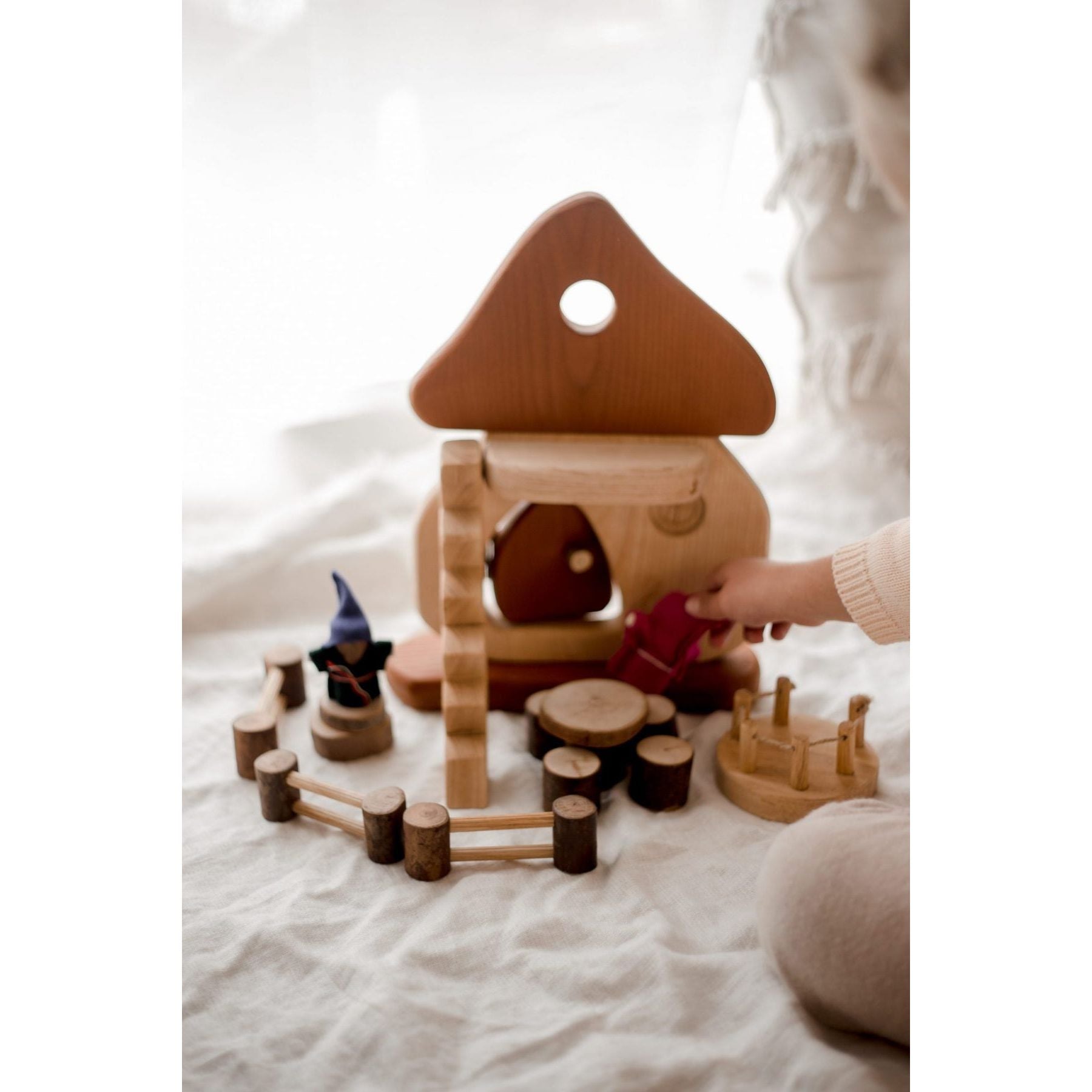 This is the sweetest little mushroom play set perfect for those imaginary thinkers! It includes all accessories as seen in the last image. This set is an open-ended toy which provides children with the perfect opportunity to explore their imaginative skills.