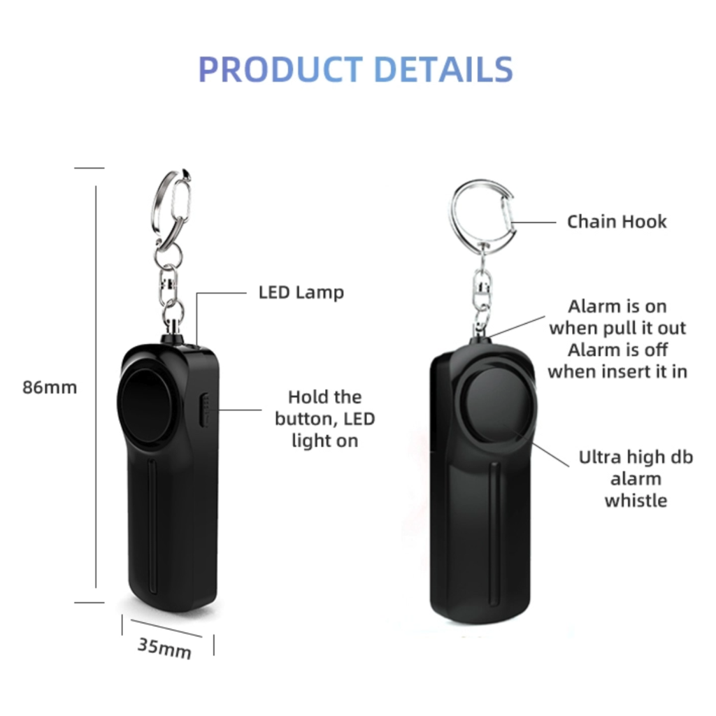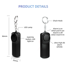 This small personal alarm keychain has 130 dB Loud Siren and Led light, It's loud and bright enough to keep you safe from startles attackers and alerts others to emergency situations.